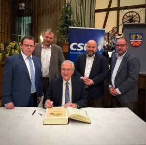 Im Rahmen einer Veranstaltung des CSU-Kreisverbandes Coburg-Land war am vergangenen Samstag Staatsminister Joachim Herrmann in Weidhausen zu Gast. Im Beisein des Zweiten Bürgermeisters Michael Hofmann, MdB Jonas Geißler, MdL Martin Mittag und Landrat Sebastian Straubel trug sich der Minister in das Goldene Buch der Gemeinde Weidhausen b.Coburg ein.